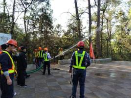 15點(diǎn)40分演習(xí)正式開(kāi)始,搶險(xiǎn)隊(duì)員迅速沿登山步道到達(dá)指定滅火區(qū)域,有的隊(duì)員快速對(duì)消防栓、水帶進(jìn)行組裝;有的隊(duì)員熟練操作滅火器材;有的隊(duì)員利用強(qiáng)力吹風(fēng)機(jī)進(jìn)行滅火作業(yè)。所有人員協(xié)調(diào)聯(lián)動(dòng),分工明確,操作標(biāo)準(zhǔn),撲火人員行動(dòng)迅速、服從命令,順利完成了此次山場(chǎng)防滅火應(yīng)急演練。