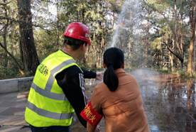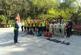 下午15點(diǎn)20分,根據(jù)公司應(yīng)急預(yù)案,由總指揮周鵬下達(dá)演習(xí)命令,10分鐘后,25人的應(yīng)急搶險(xiǎn)隊(duì)伍快速集結(jié)在戴震公園廣場(chǎng)并完成整隊(duì)。正式演練前,周鵬為參加演練的人員作了演習(xí)思想動(dòng)員,詳細(xì)介紹了森林火災(zāi)的起因、火災(zāi)的預(yù)防以及現(xiàn)場(chǎng)逃生自救的方法,講解了滅火器、滅火拖把、油鋸、鼓風(fēng)機(jī)等常見(jiàn)防滅火裝備的使用方法和維護(hù)保養(yǎng)注意事項(xiàng)。