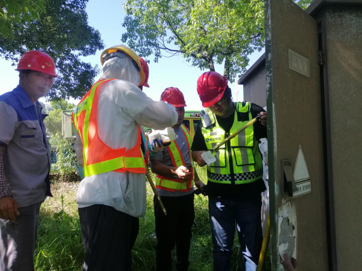 演練結(jié)合照明電力設(shè)施梅雨季節(jié)風(fēng)險因素,針對城市運(yùn)維特點(diǎn)和薄弱環(huán)節(jié),進(jìn)行了照明高低壓配電突發(fā)險情快速應(yīng)急處置演練。演練模擬花山大橋附近400KVA箱變高壓熔斷故障并伴有變壓器滲油情況應(yīng)急處置,屯光大道水淹路段燈桿漏電應(yīng)急處置、淹沒區(qū)域現(xiàn)場架設(shè)應(yīng)急線路等多項內(nèi)容。此次演練共出動應(yīng)急搶險車輛3臺、高空作業(yè)車2臺,專業(yè)應(yīng)急搶險隊員15人。