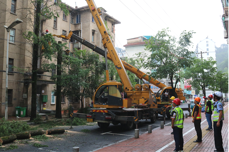 為了及時消除安全隱患,給社區(qū)居民營造一個干凈整潔的居住環(huán)境,保證居民的家庭采光,市政園林公司聯(lián)合交通、城管、管理中心等多部門,提前制定了修剪計劃,并告知周邊店鋪及居民移走路邊車輛及設(shè)施。修剪時封閉此段交通,在保證安全的同時爭取盡快完成修剪任務(wù),修剪后及時完成現(xiàn)場的清運工作,盡早恢復交通及居民的正常生活。