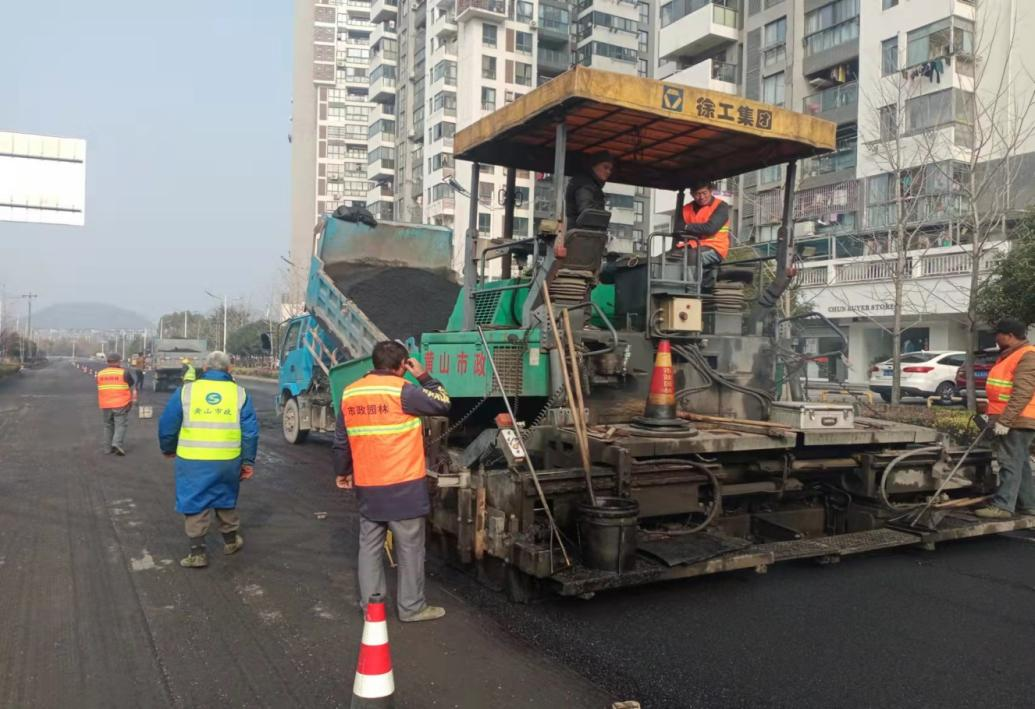 施工隊伍克服寒冬露天作業(yè)天氣寒冷的不良影響,堅持質(zhì)量第一原則,嚴(yán)格施工程序,實行全程質(zhì)量管控,瀝青出料溫度管控,瀝青層厚度測量,確保了瀝青攤鋪工程質(zhì)量,高效打造瀝青攤鋪精品工程。(市政園林公司供稿)