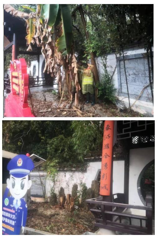 徽州大道稽靈山公園是中心城區(qū)一處休閑漫步的好去處,入口兩側(cè)生長著10株芭蕉樹,夏季綠蔭如蓋,令人頓生清涼之感。近日,市政園林公司巡查人員發(fā)現(xiàn)該處芭蕉樹部分枝葉干枯,影響景觀效果。為此,公司迅速行動,冒雨對該處芭蕉樹進(jìn)行修剪。根據(jù)芭蕉樹的生長習(xí)性,公司養(yǎng)護(hù)人員決定對芭蕉樹留茬砍光,并用刀具修整斷面,為春季新苗提供良好的生長條件。清理完成后,養(yǎng)護(hù)人員清理了作業(yè)現(xiàn)場,將砍下來的枯枝腐葉裝車運(yùn)走,保證了公園的干凈整潔。(市政園林公司供稿)