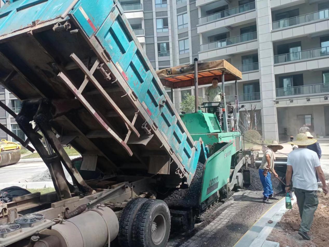 8月11日,作業(yè)人員正式進(jìn)入現(xiàn)場,按照施工計(jì)劃和瀝青攤鋪流程對道路進(jìn)行施工,從瀝青攤鋪層尺寸、混合料規(guī)格以及攤鋪層的質(zhì)量等方面嚴(yán)格控制,對瀝青攤鋪溫度、平整度適時(shí)把控。同時(shí),為保障施工中的安全和工程質(zhì)量,確保瀝青施工各個(gè)環(huán)節(jié)順利進(jìn)行,市政園林公司對現(xiàn)場機(jī)械設(shè)備和施工人員統(tǒng)一管理,做好小區(qū)施工區(qū)域安全管理及警示標(biāo)牌擺放等,并按《黃山市建筑工地高溫作業(yè)明白卡》合理安排作業(yè)時(shí)間,落實(shí)防暑降溫措施,提前備好飲用水、仁丹、藿香正氣水等防暑降溫物品,確保施工安全。