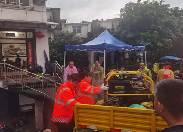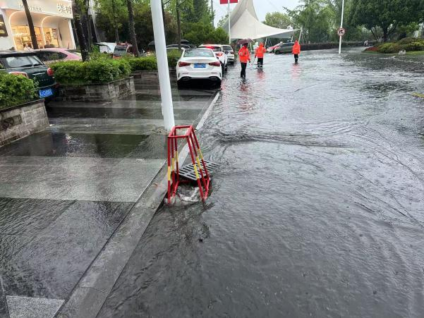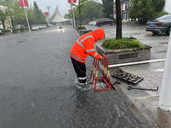 12時50分,市政園林公司應急指揮部發(fā)出“防汛動員令”,20輛應急搶險車、80名專業(yè)搶險人員15分鐘內完成集結,分赴徽州大道、濱江路等5處重點積水區(qū)域。搶險人員采取“封控-排水-清淤”三步處置法,在積水最深路段架設90余塊防洪擋水板、堆筑100余袋沙袋圍堰,同步啟用大功率排水設備開展強排作業(yè)。1臺大功率動力站和便攜抽水機連續(xù)運轉3小時,單小時排水量達400立方米,為搶通道路贏得時間。