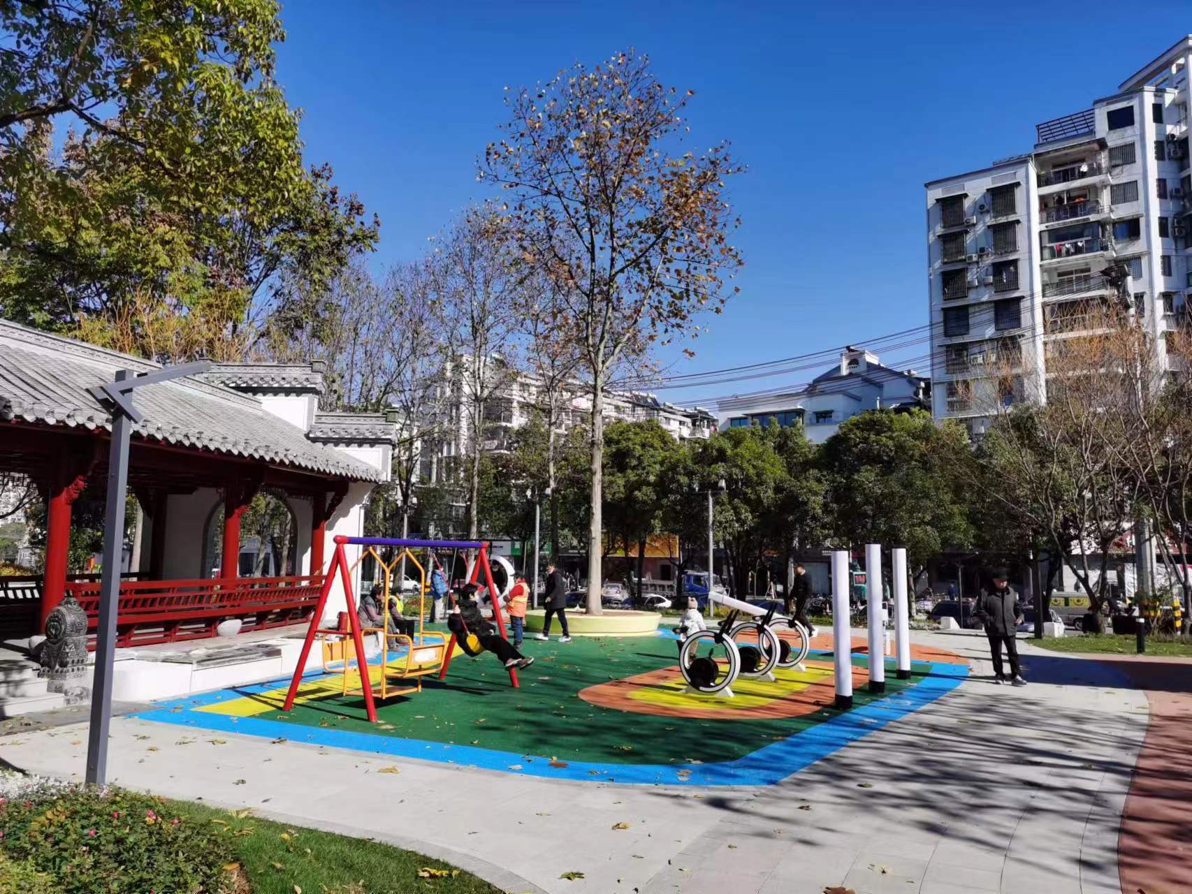 公園內(nèi)布置有健身活動(dòng)區(qū)及兒童游樂(lè)區(qū),新增了太陽(yáng)能健身器材、無(wú)動(dòng)力單車(chē)、 七彩秋千、七彩蹺蹺板,修繕一新的景觀閑亭和長(zhǎng)廊為周?chē)用裉峁┬蓓瑘?chǎng)地。園區(qū)內(nèi)還增設(shè)了智慧座椅和全市第一個(gè)裝配式智慧公廁,在打造智慧公園的同時(shí),為市民提供了直飲水、公廁、休憩空間等便民服務(wù)。夜間采用感應(yīng)花瓣燈、報(bào)樹(shù)燈、飄影燈、投影燈、草坪燈、霧森等燈光效果,對(duì)園路、擋墻進(jìn)行亮化布置,打造了游園夜間獨(dú)特景觀效果;綠化景觀以藍(lán)色“無(wú)盡夏”繡球花為主基調(diào),增加花境布置,在每年6-9月可呈現(xiàn)出一座美麗花園。
